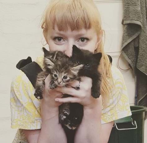 Alice’s current pets include 2 Devon Rex cats named Peggy and Mabel, and a whippet called Nigel.
